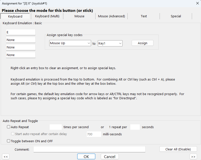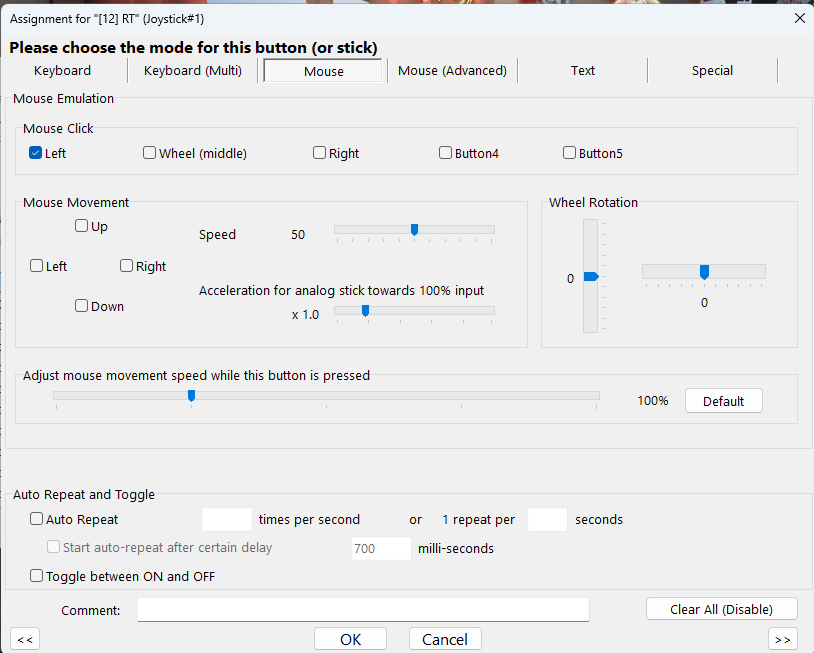 我還有額外設定一個鍵 就是 RT鍵(板機鍵),主要是設置成 滑鼠左鍵點擊(這樣用手把時 就不用特別去用滑鼠點)
