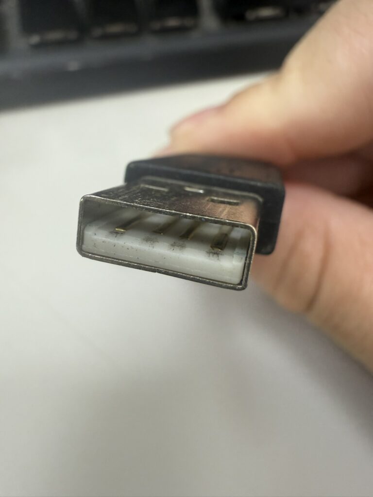 可以看到 USB2.0的顏色是 白色的 這很常見,然後再來就是注意 針腳(金金的那個就是針腳),有4隻針腳(判斷針腳會是最快的),有4隻針腳 基本上可以直接斷定是 USB2.0,所以買新的 USB傳輸線 一定要先看清楚有幾隻針腳。